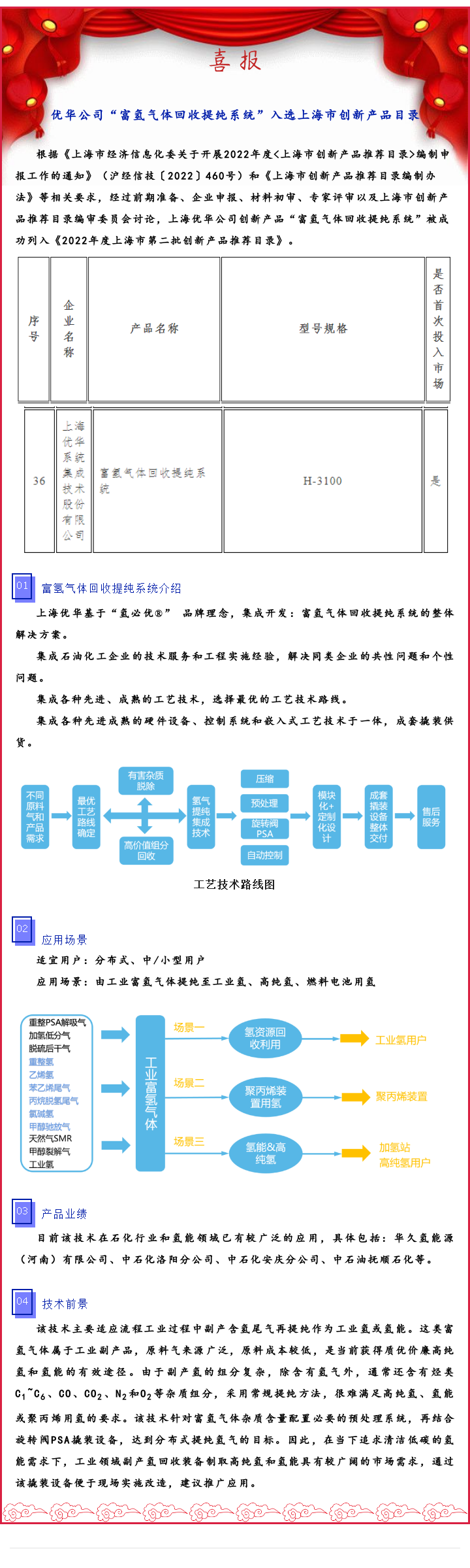 熱烈祝賀優(yōu)華公司“富氫氣體回收提純系統(tǒng)”入選上海市創(chuàng)新產(chǎn)品目錄