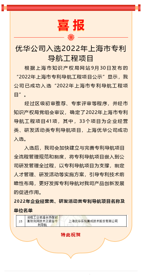 優(yōu)華公司入選2022年上海市專利導(dǎo)航工程項目